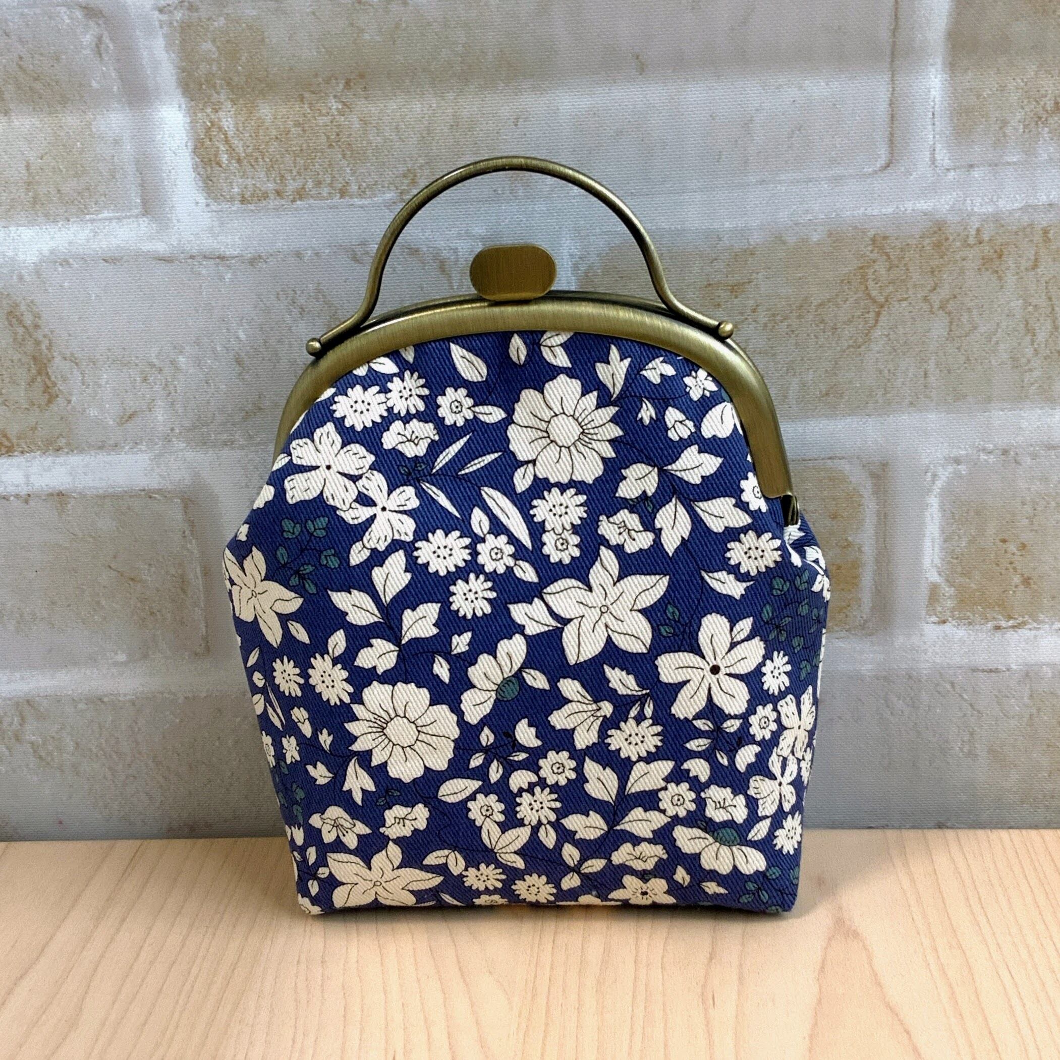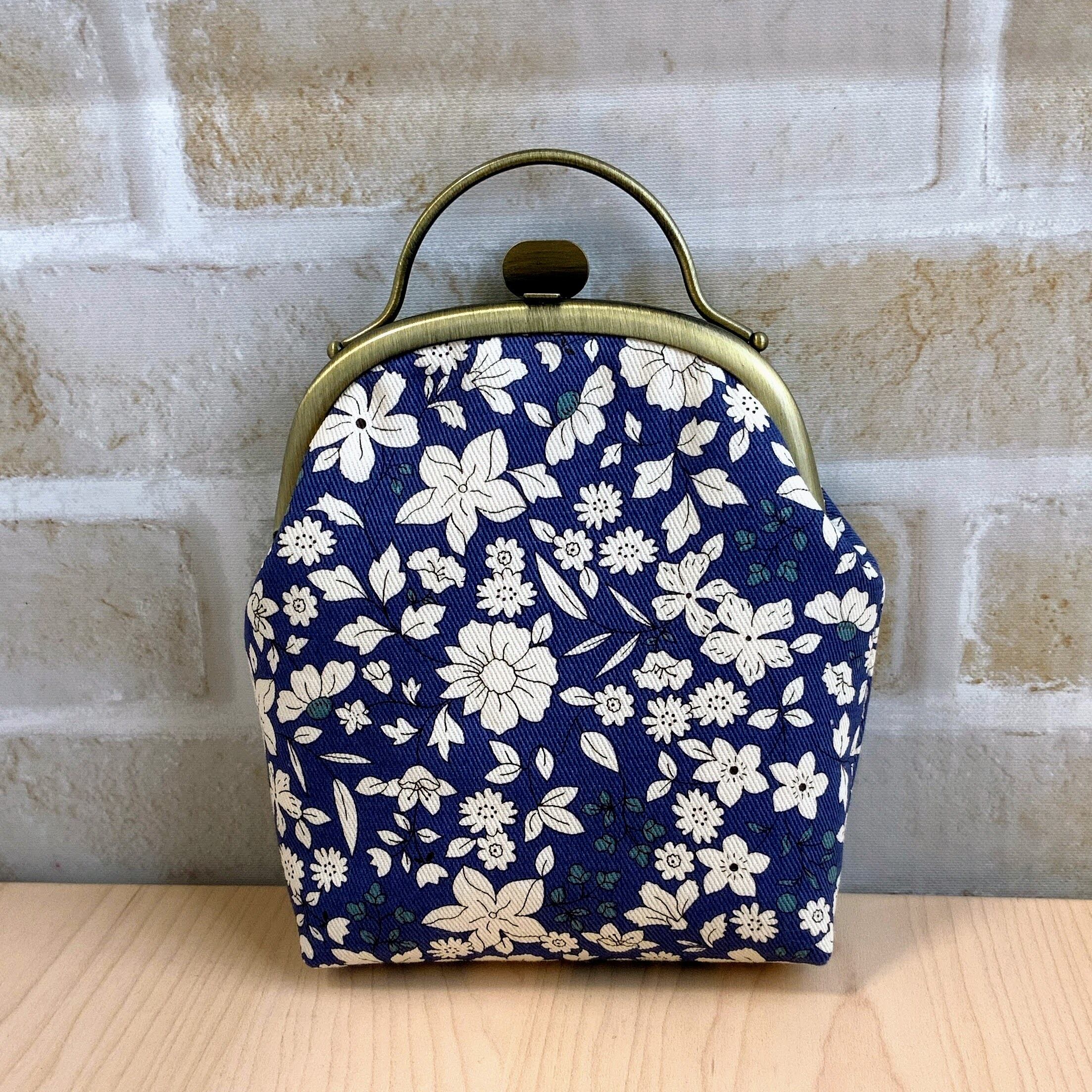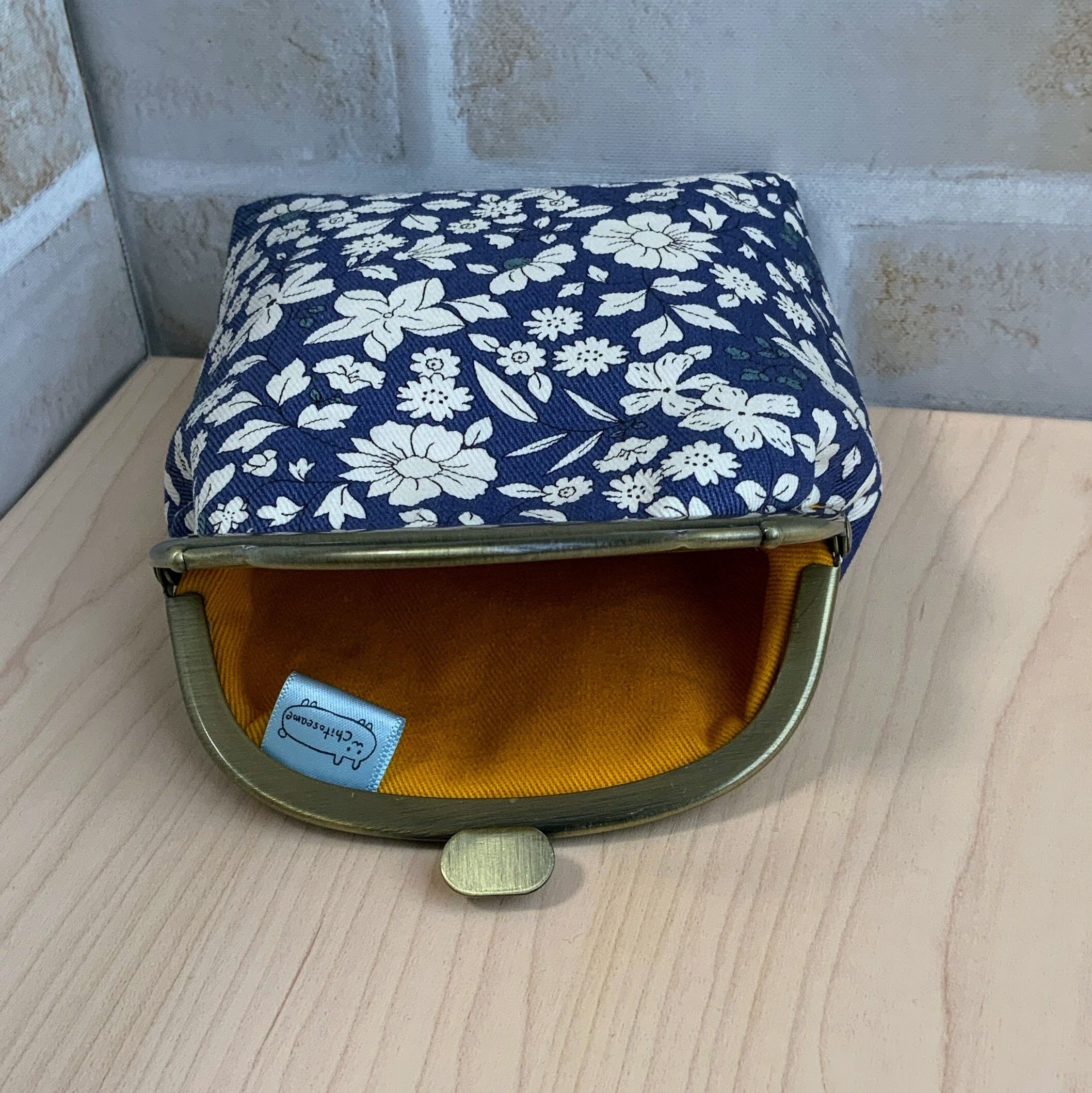 【10cm】紺色の花柄押し口がま口ポーチ