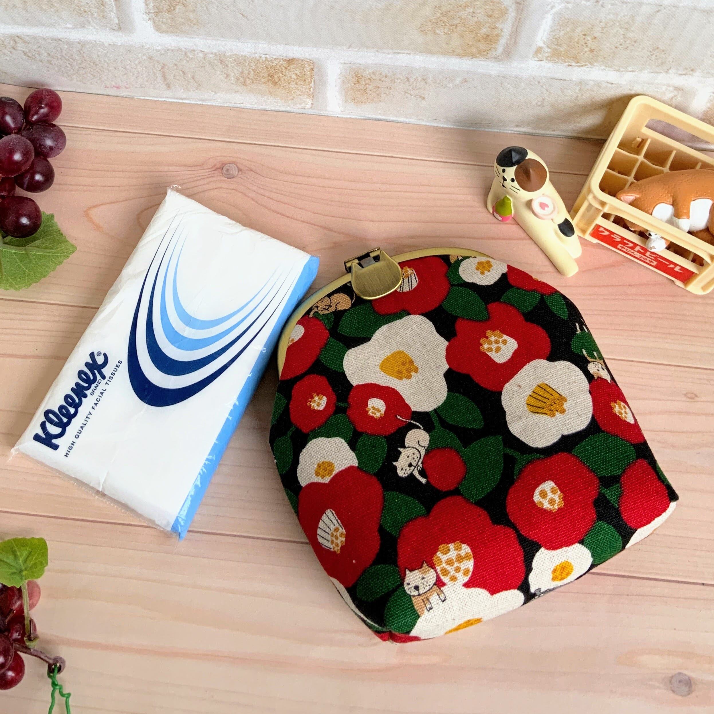 押して開けるタイプのがま口ポーチです。