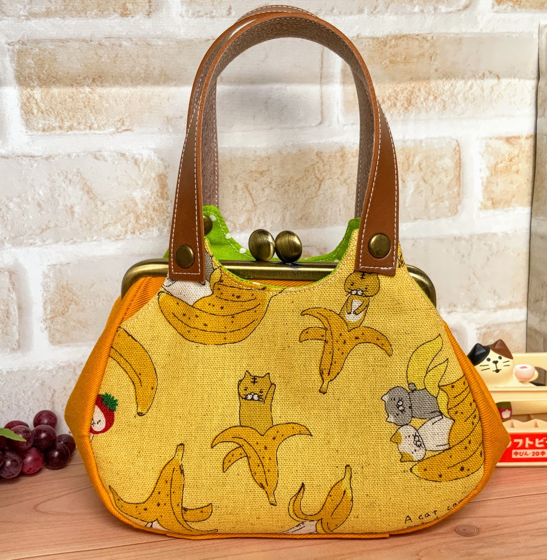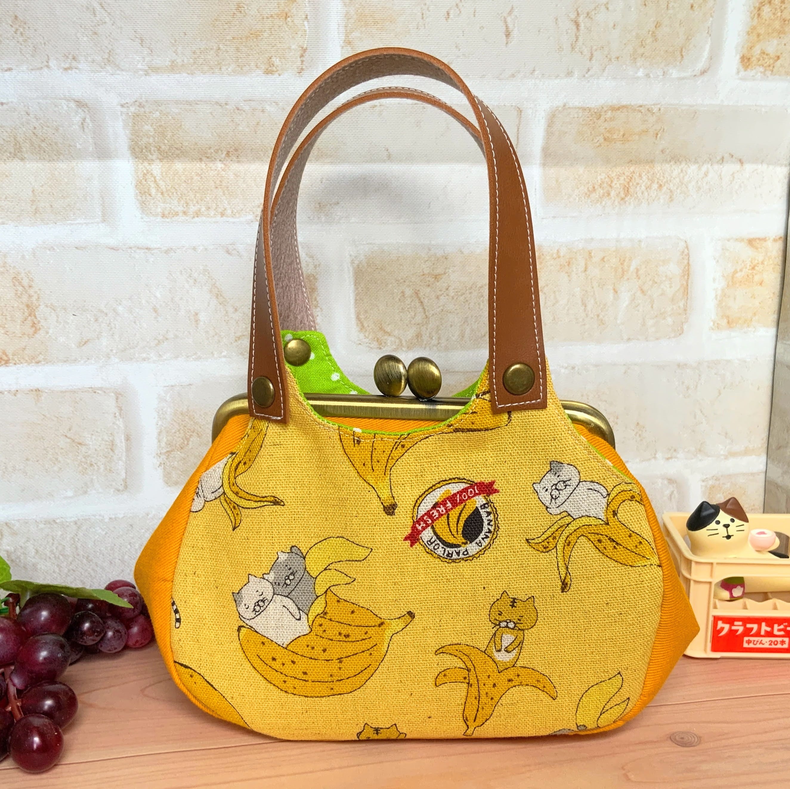 12.5cmあおりがま口ポーチ-バナナ