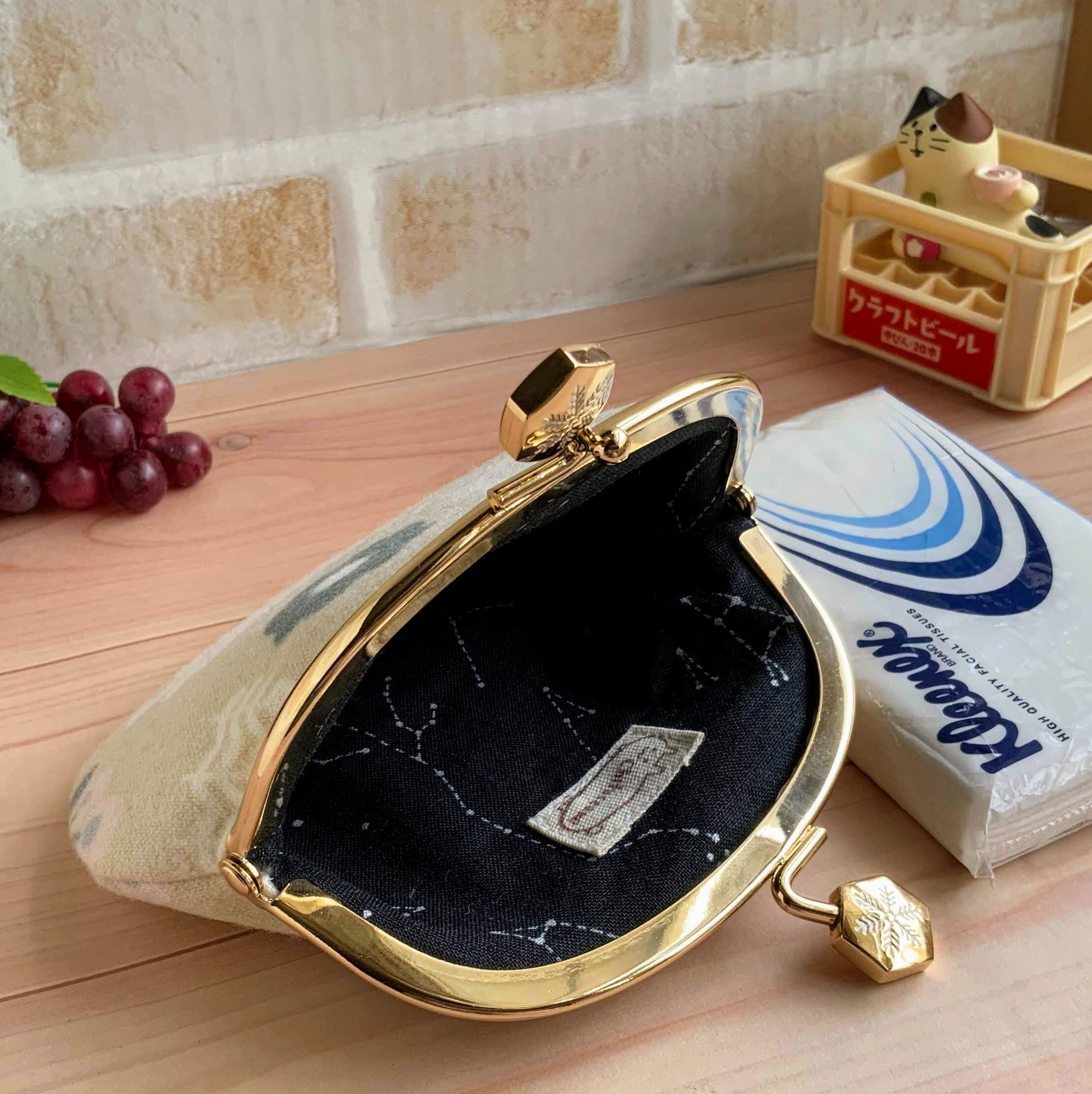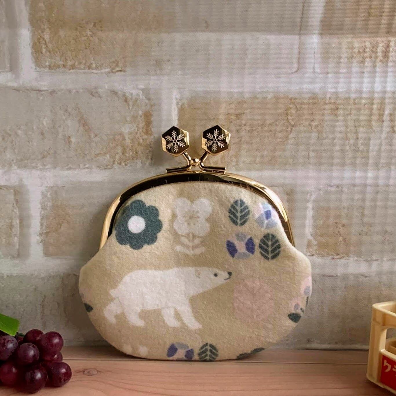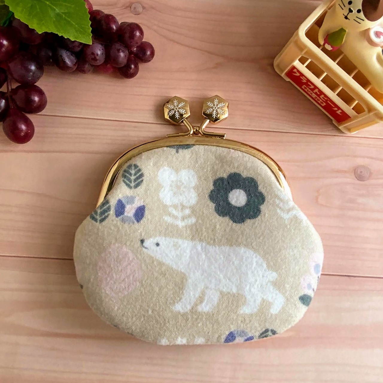 10cmぺたんこがま口ポーチ 雪の結晶とシロクマさん