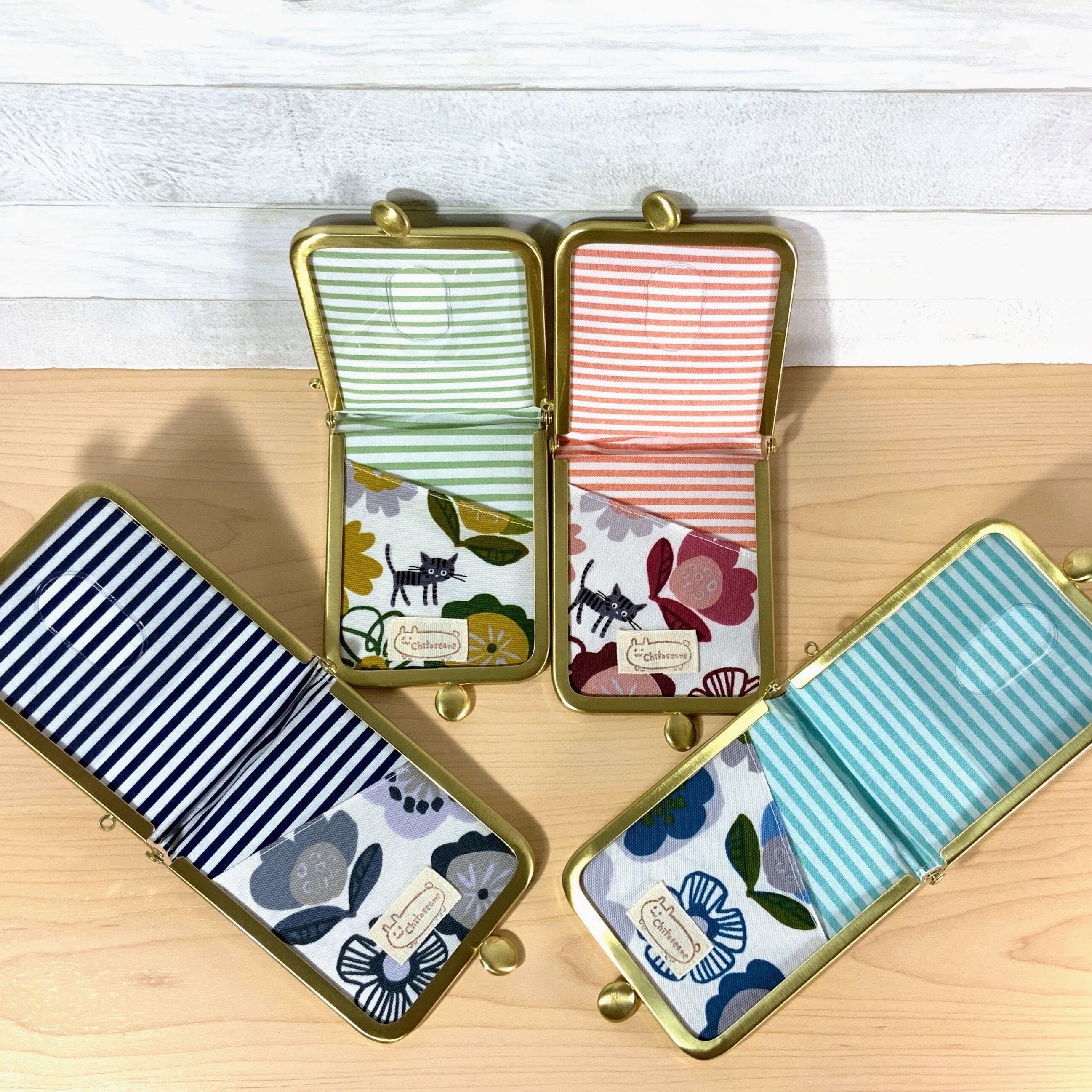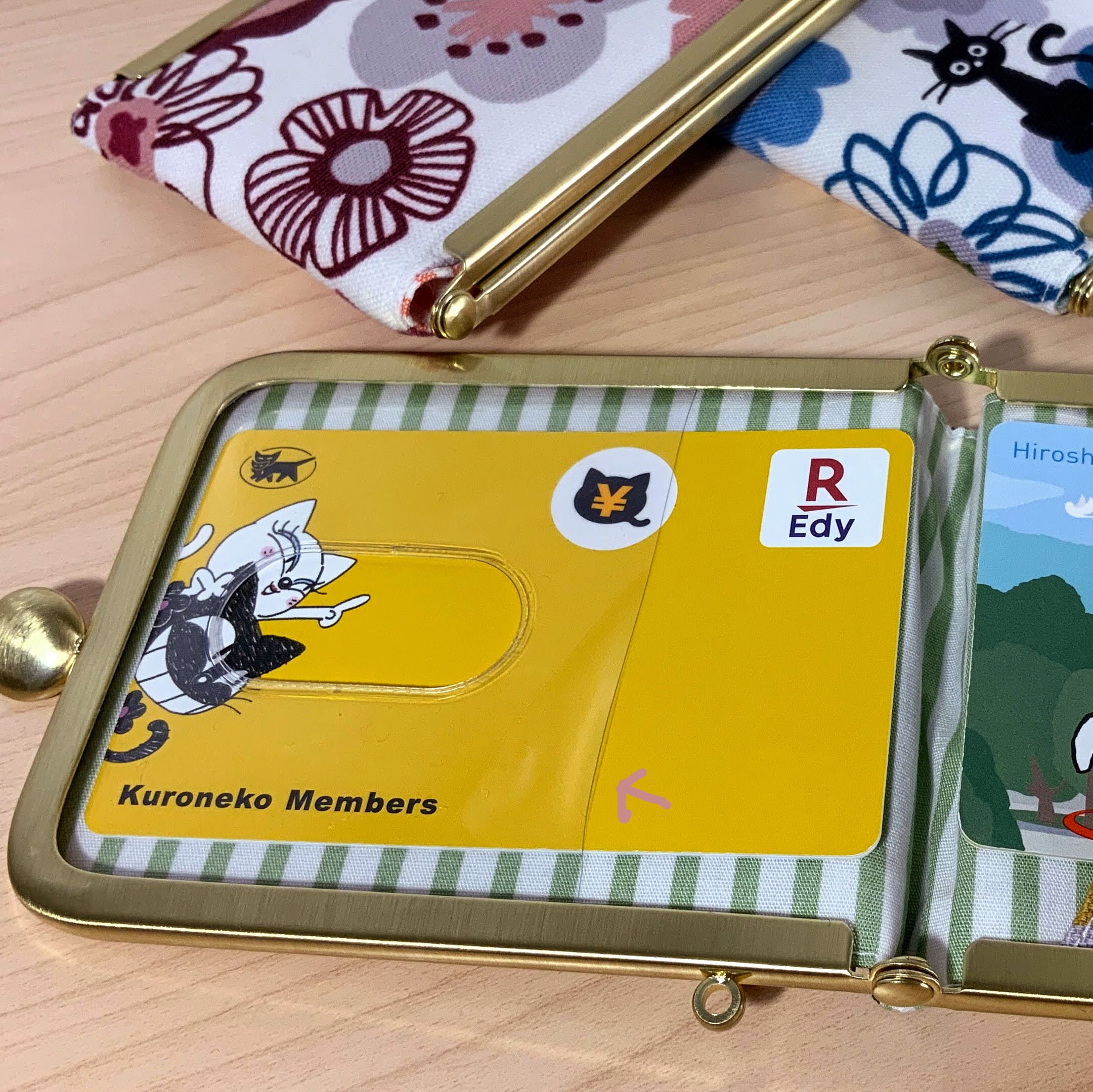 7.5cm黒猫とお花のがま口パスケース&カードケース